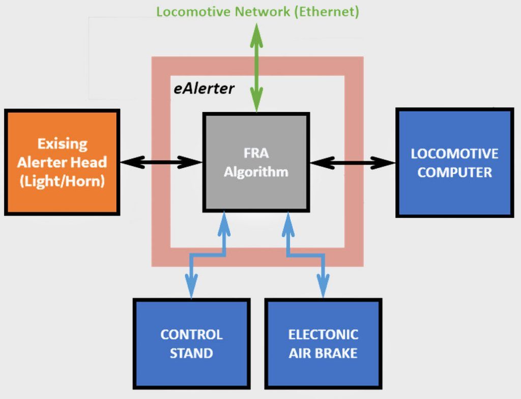 The eAlerter is compatible with most existing audiovisual alarm boxes and electronic air brake systems by deriving locomotive control state available from LDARS and PTC on-board messaging as well as any serial source such as a locomotive computer to implement an FRA-compliant alertness algorithm. The eAlerter integrates into the locomotive network and also supports generation of real-time ITC network alerts for user-specified logical conditions.